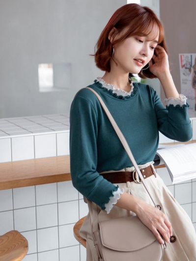 跟你推薦一個知性配色直條紋拼薄透寬傘袖圓領後釦上衣.2色購買的專賣店網站
