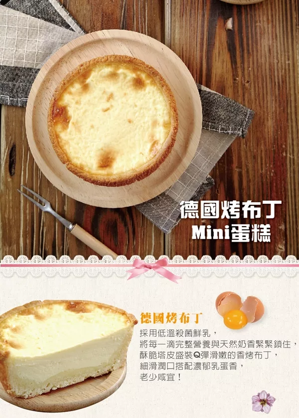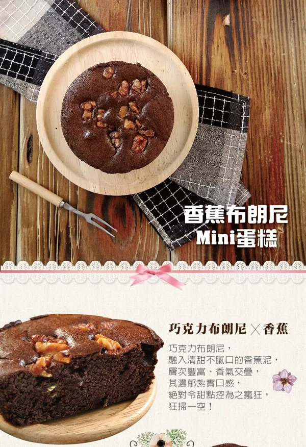 網購熱銷美食《第二顆鈕釦PU》mini cake系列(燒烤乳酪-2 香蕉布朗尼-1 德國烤布丁-1)美食網推
