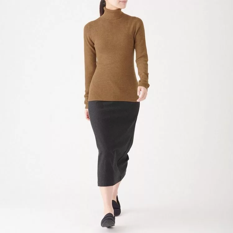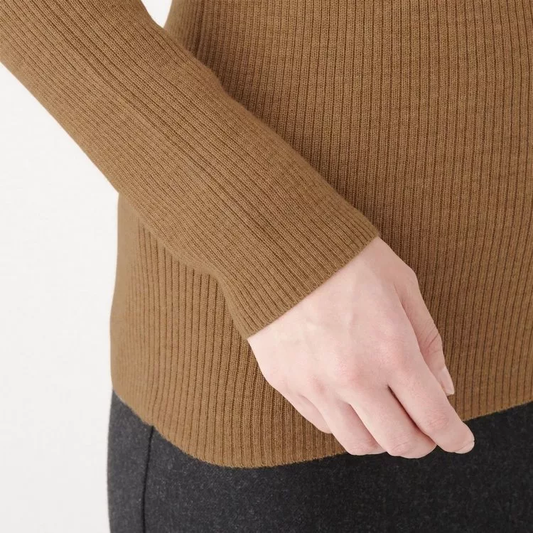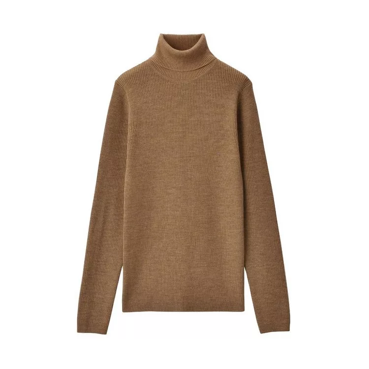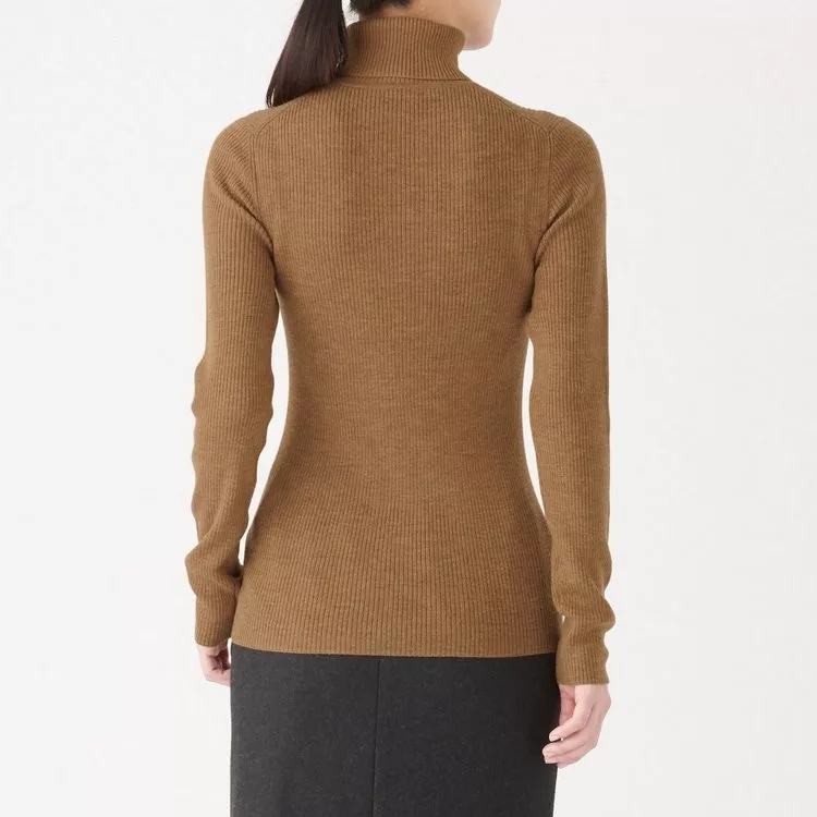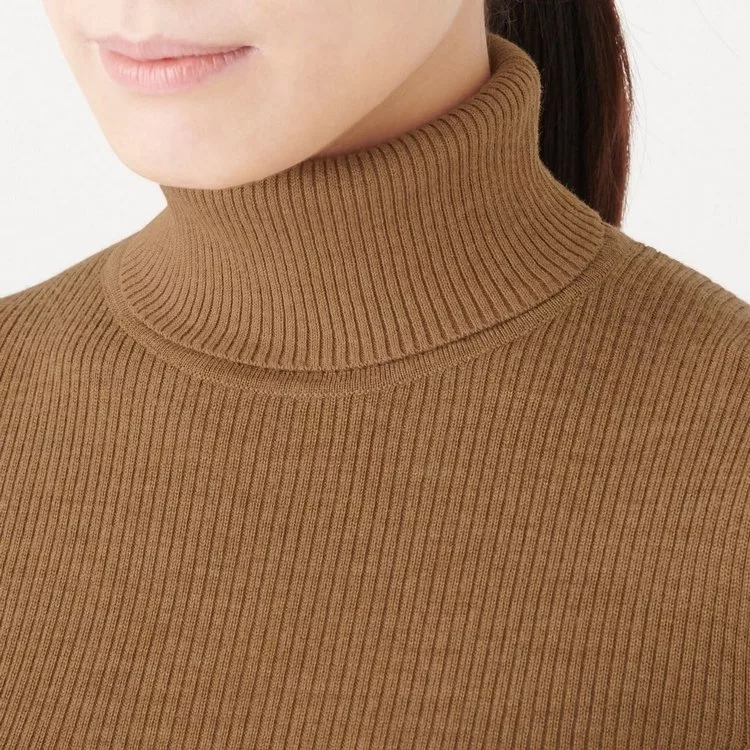 商品說明: [MUJI無印良品]女不易刺癢羊毛螺紋高領針織衫S駝色