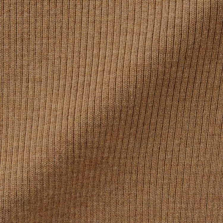 品名:女不易刺癢羊毛螺紋高領針織衫駝色S
