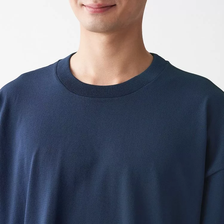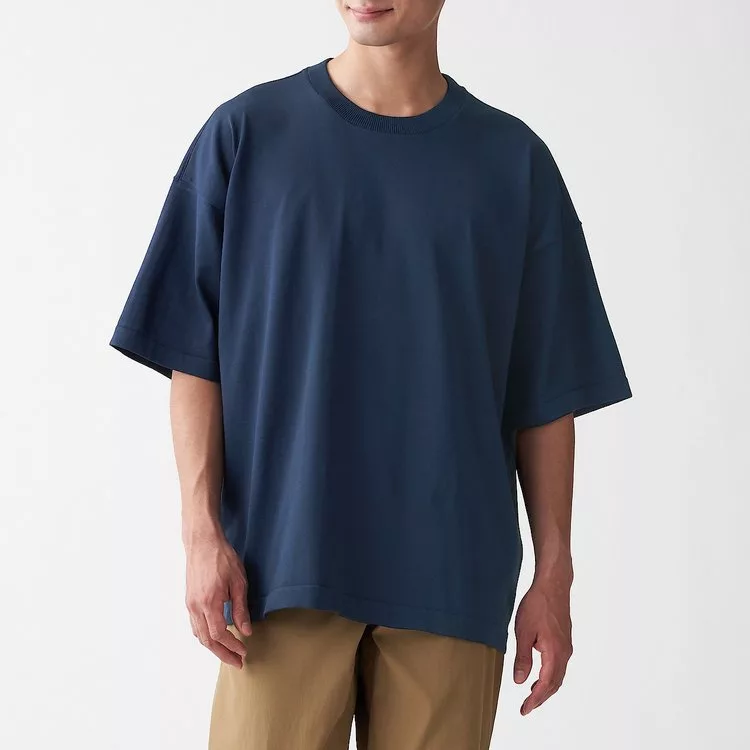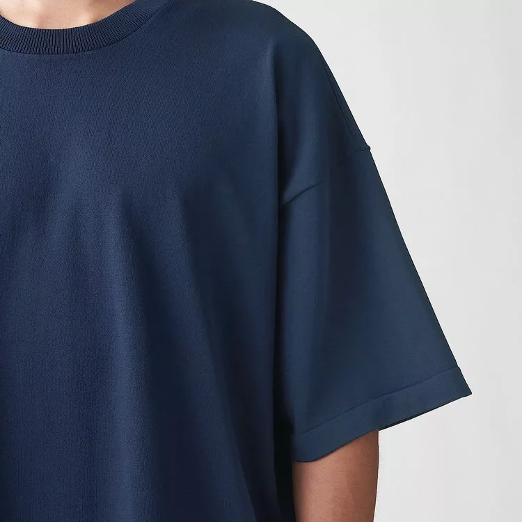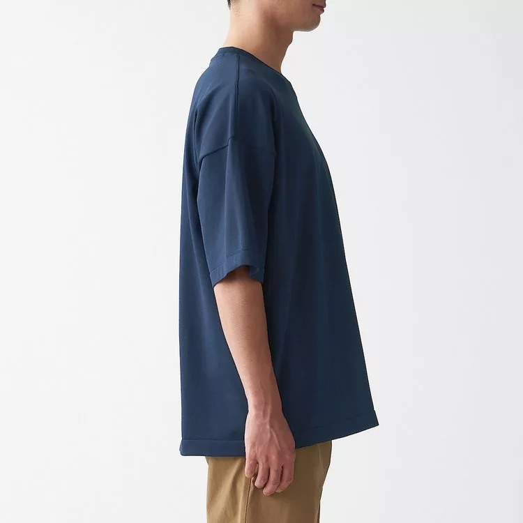 商品說明: [MUJI無印良品]輕鬆保養聚酯纖維針織T恤L~XL深藍