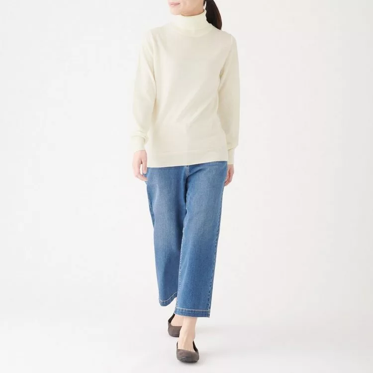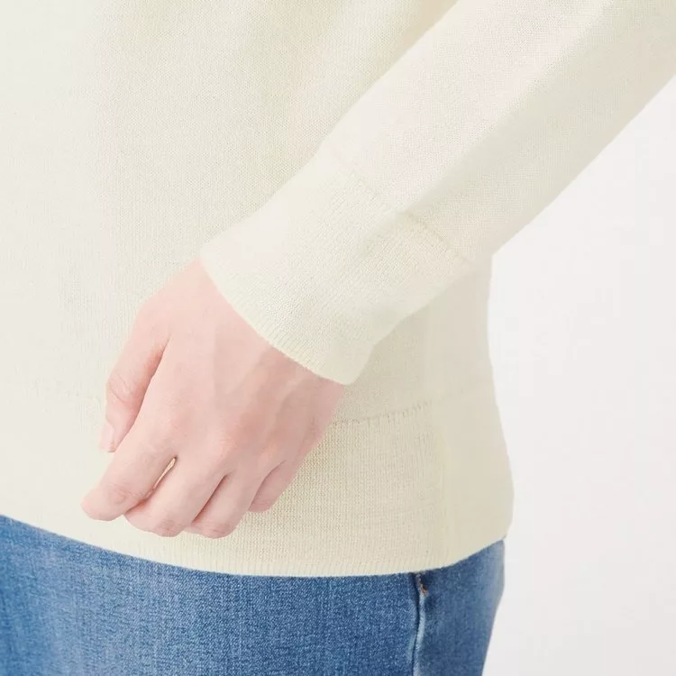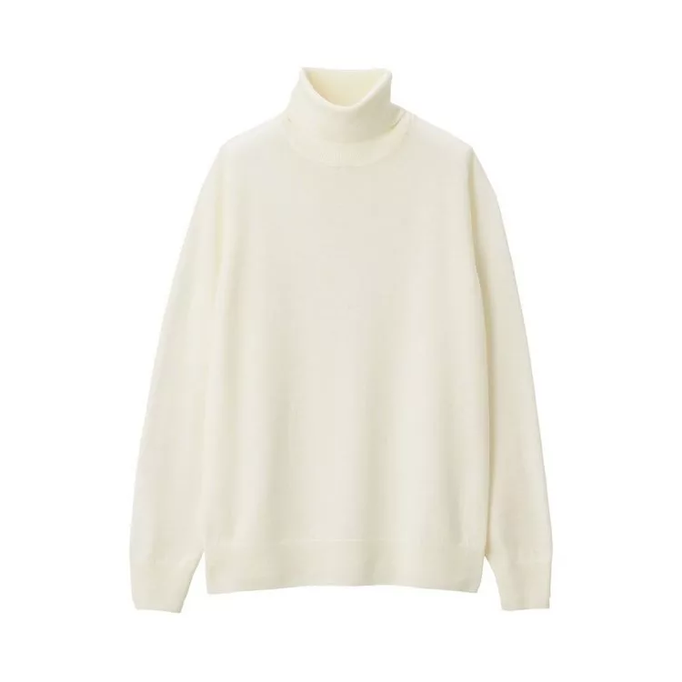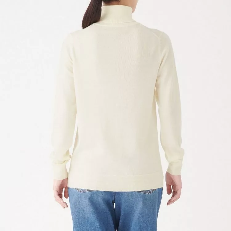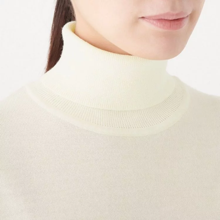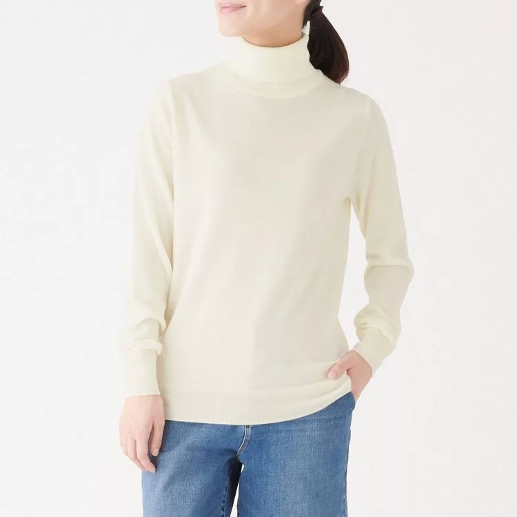 商品說明: [MUJI無印良品]女不易刺癢羊毛天竺高領針織衫XL柔白