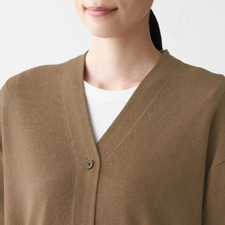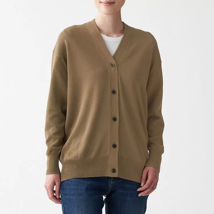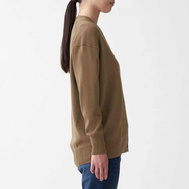 網路買無印良品商品推薦-[MUJI無印良品]女棉混嫘縈寬版開襟衫M-L摩卡棕最多人推薦購買