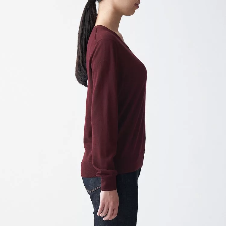 商品說明: [MUJI無印良品]女羊毛混蠶絲可水洗V領針織衫S暗紅