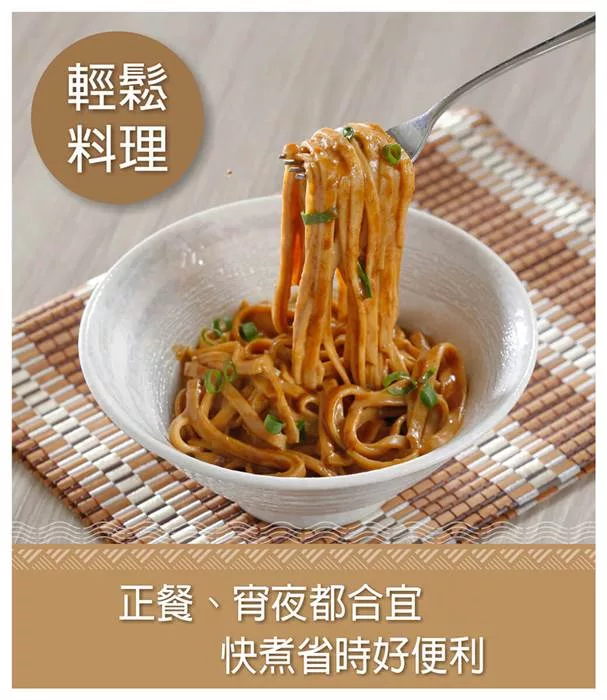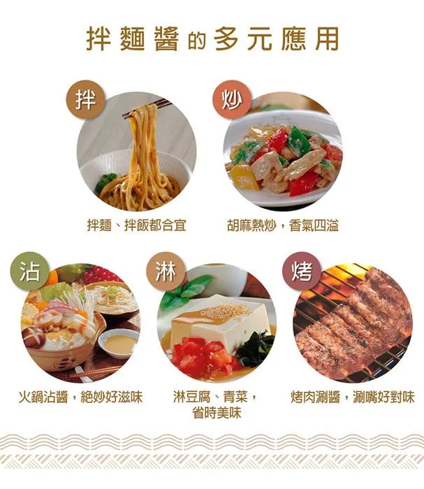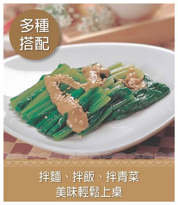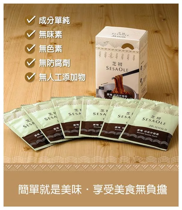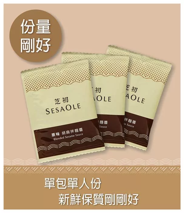 商品描述: 商品介紹:採用控溫焙炒新鮮芝麻,經多道研磨、製成細緻香醇的芝麻醬,再以黃金比例調製出獨家風味的『原味胡麻拌麵醬』,醇厚濃郁的胡麻香氣令人食指大動。 如何煮出美味麻醬麵:1. 煮:準備約100克麵條,麵條煮熟撈起備用2. 揉:搓揉胡麻拌麵醬料袋,完美融合醬料3. 淋:將拌麵醬細細淋上麵條上,美味絕配4. 拌:攪拌均勻,一口入魂簡單四步驟,可口麻醬麵輕鬆上桌!※可依個人喜好加入醋,蒜泥,小黃瓜,蛋絲等……